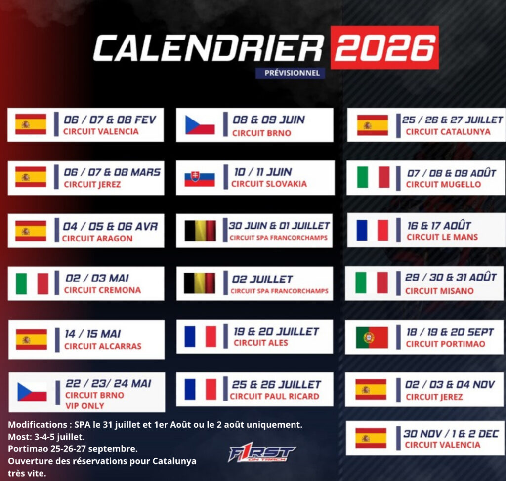 Il existe des circuits sur lesquels on roule… et d’autres qui marquent une trajectoire. Pour First On Track, le calendrier 2026 ne se résume pas à une succession de dates : il trace un itinéraire à travers des circuits mythiques, ceux qui ont forgé l’histoire du sport moto et automobile, et qui continuent de façonner les pilotes d’aujourd’hui.